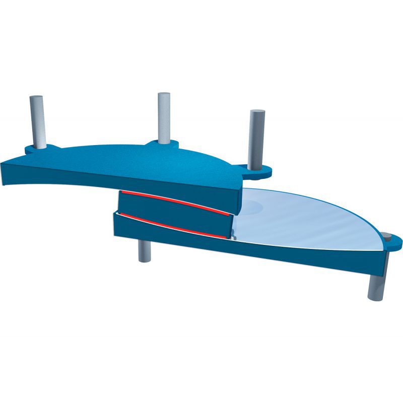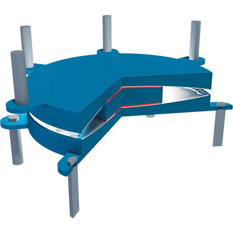 TDP consists of a steel sliding element, which can also be articulated to accommodate high rotation demands, located between two backing plates with the same radius of curvature and patented special sliding materials Technoslide on sliding/rotating surfaces.